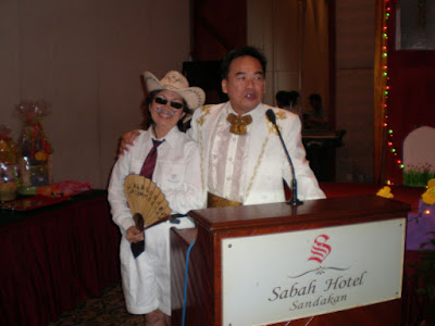 The venue was at English Tea House which oversees the whole of Sandakan town during the day. It was warm since the afternoon but minutes before the function started, it began to drizzle. The guests were not really affected as they were all seated under the shade prepared earlier. However the stage was definitely affected.